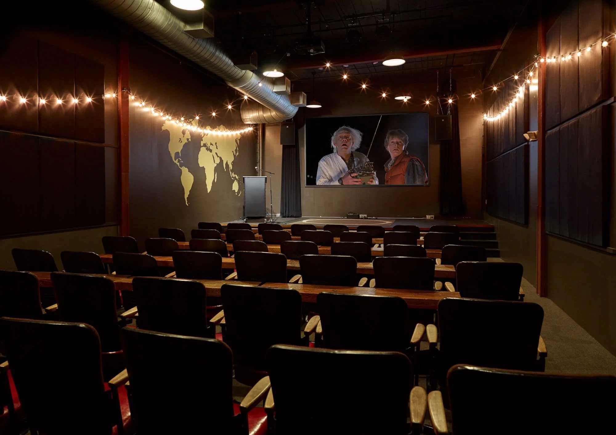 Our Theater is suitable for private or public film screenings, slideshow presentations, conferences, film-forward parties, and more. Holds 40 seated guests.